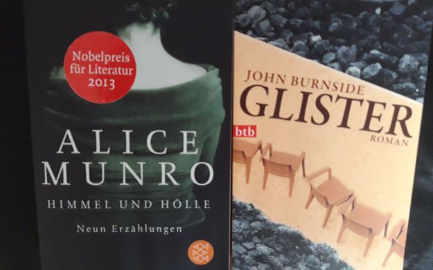 Wie schaffe ich jetzt von hier aus den Übergang zu Alice Munro, der Literatur-Nobelpreisträgerin von 2013, die genau 16 Tage vor John Burnside starb, allerdings im deutlich höheren Alter von 92 Jahren? Ihre Erzählungen im Band Himmel und Hölle, den ich in Anschluss an Glister gelesen habe, haben auf den ersten Blick wenig mit Burnsides Roman zu tun. Eine Gemeinsamkeit könnte man aber darin sehen, dass es beide verstehen, das vermeintlich Profane, vielleicht auch Triste mit einer zusätzlichen, „literarischen“ Bedeutungsebene aufzuladen.